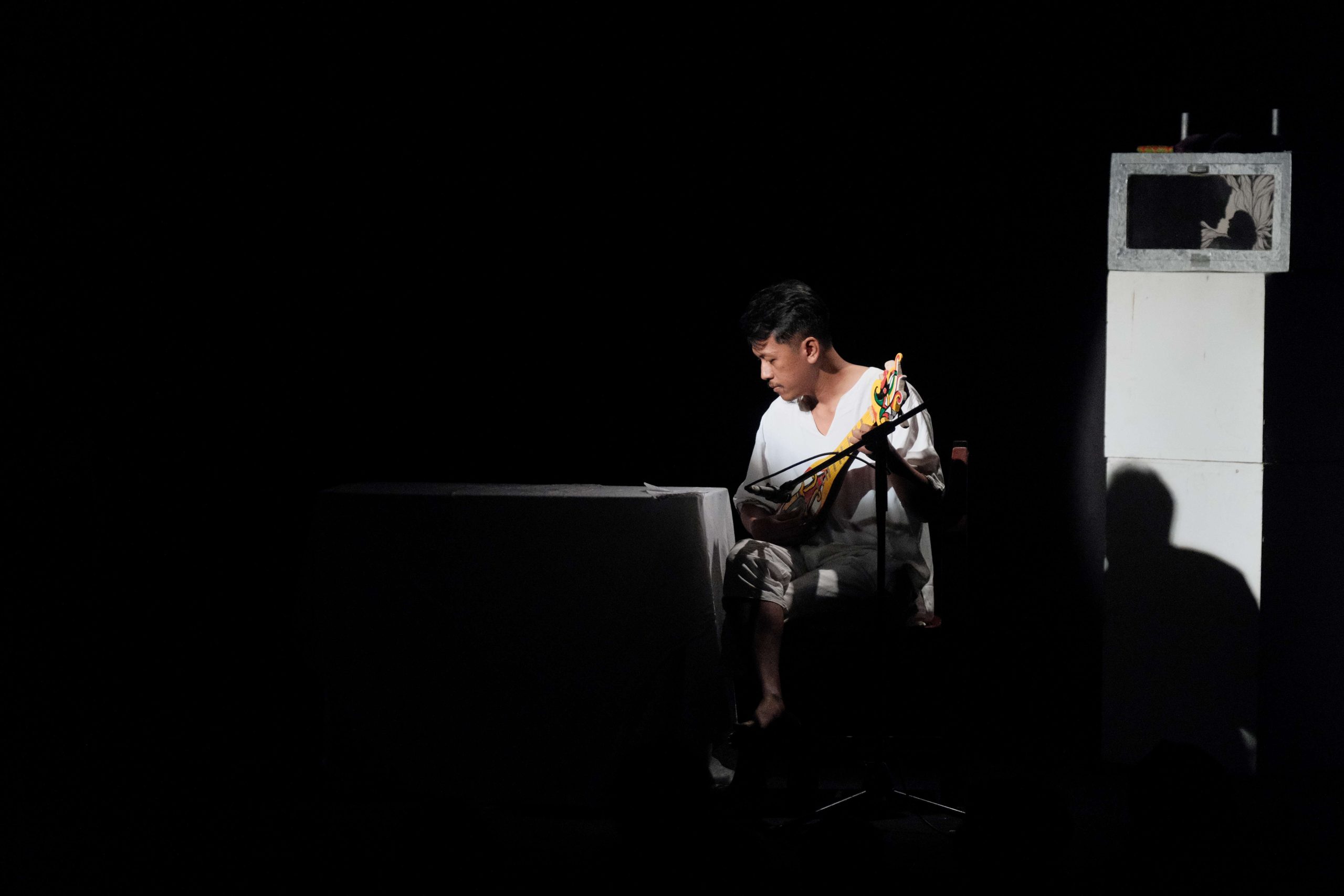 A theatrical performance titled Tuan Berjas Beludru & Mimpinya, presenting an imaginative story about dreams, characters, and playful moments through visual storytelling and simple stage elements.